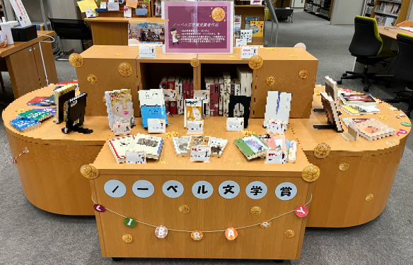 村上春樹さんなどの有力候補作家の作品やノーベル賞に関係する本も展示して います📘